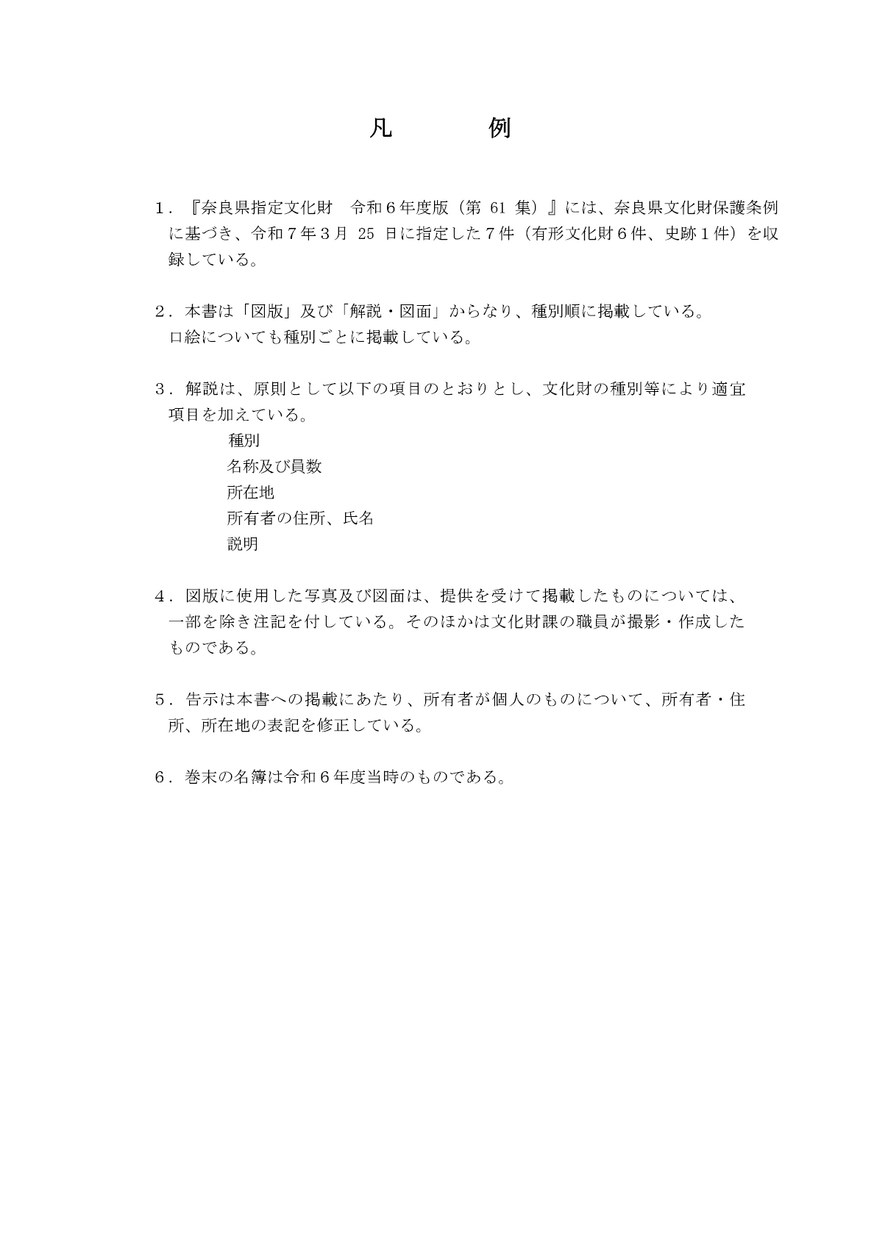 『奈良県指定文化財』令和6年度版(第61集)