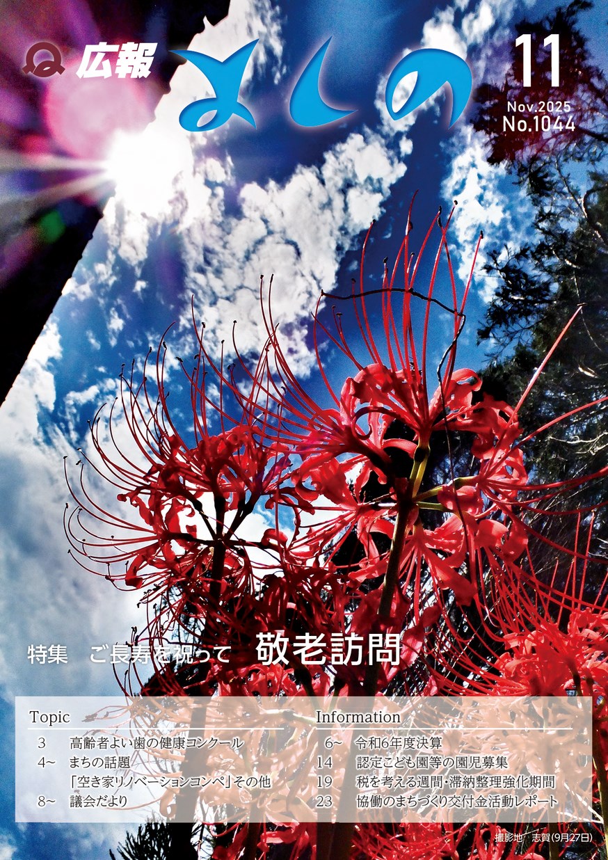 広報しもいち 2025年11月No.738 広報おおよど 2025年11月 No.631 広報よしの 2025年11月 No.1044 広報五條 2025年11月号No.925 広報曽爾 2025年(令和7年)11月号